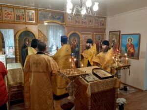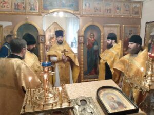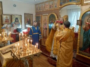 На клиросе вели службу, певчие храма во главе с регентом матушкой Натальей Жевердан. Во время сугубой ектении была вознесена молитва о Святой Руси.