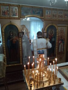 Богослужебные песнопения исполнил хор Никольского храма под управлением матушки Натальи Жевердан. На сугубой ектении были вознесены особые прошения, молитвы о Святой Руси.