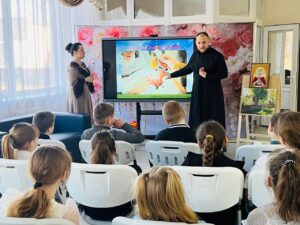 В начале мероприятия, детям ведущие рассказали об основах православной веры, о том, что она говорит о Боге. Бог — это не сказка, а реальность, с которой надо жить, а также с 10 заповедями Закона Божьего. Рассказ сопровождался показом презентации. Михаил зачитывал притчи из Библии и отрывки из произведений классиков мировой литературы, приводил примеры из жизни, чтобы понятней и доступней, и ближе стали Заповеди.