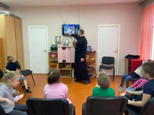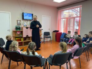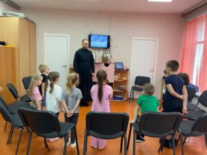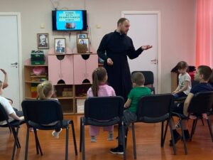В рамках реализации духовно-нравственного воспитания детей в МБДОУ ЦРР Кашарский д/с №1 «Тополёк» сл. Кашары, по благословению настоятеля Никольского храма сл. Кашары, протоиерея Игоря Жевердан, катехизатор Бурцев Михаил Николаевич для детей старшей группы «Колобок» провел православное мероприятие на тему: «День православной книги».